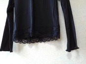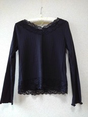 秋から春にかけて活用できるブラウニーの首回りと裾がレースの長袖ブラウス です。