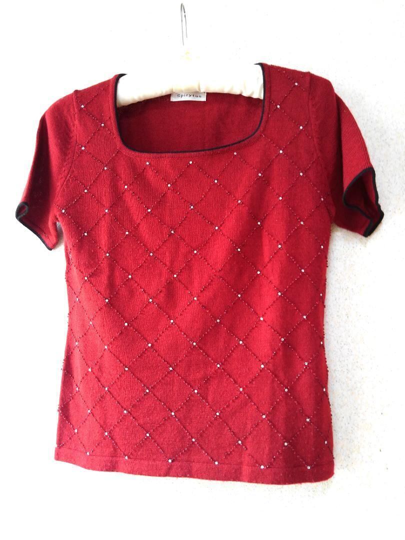 Spirytusの前面にビーズが散りばめられたニットシャツです。